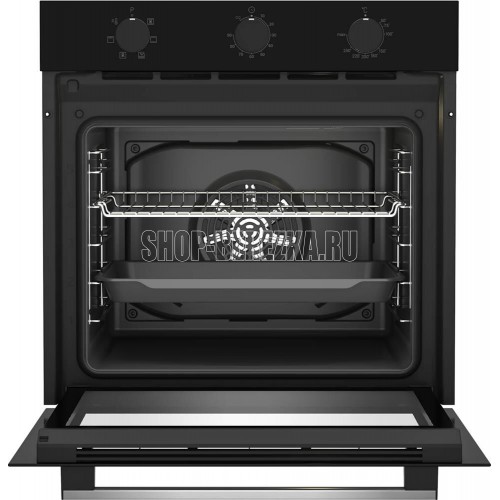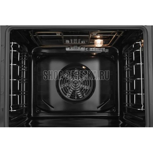 Электрический духовой шкаф; 6 программ; дисплей; поворотные переключатели; система очистки паром; металлические направляющие; объем - 72л.; 2 стекла дверцы; 1 решетка; 1 противень; цвет - черный