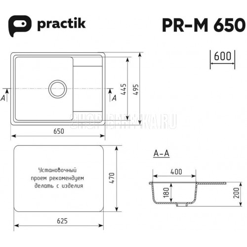 Классическая односекционная реверсивная мойка Practik PR-M 650 с плоским крылом является оборачиваемой - крыло может располагаться как справа,так и слева. Материал мойки представляет из себя искусственный камень, который является композитом на основе натурального мрамора и связующих смол. Искусственный камень существенно снижает уровень шума при падении струи воды. Специальное покрытие гелькоут защищает поверхность мойки от загрязнений и бытовых царапин, делая уход за мойкой легким и простым. Данная мойка устанавливается в шкаф от 60 см и дает возможность осуществить монтаж мойки в стандартную столешницу шириной 60 см. Заводская гарантия составляет 1 год, а срок службы данной мойки, при соблюдении основных правил ухода за ней, составляет более 10 лет.