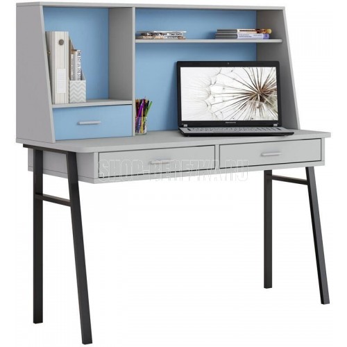 POLINI Стол письменный kids Aviv 1455 с надстройкой и ящиками серый/серый-голубой (4 кор.)