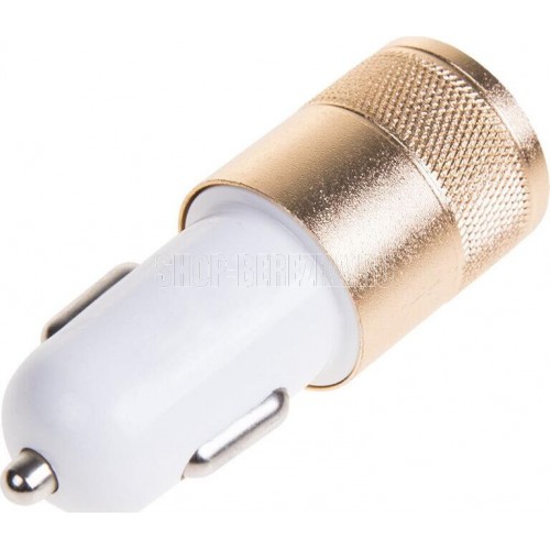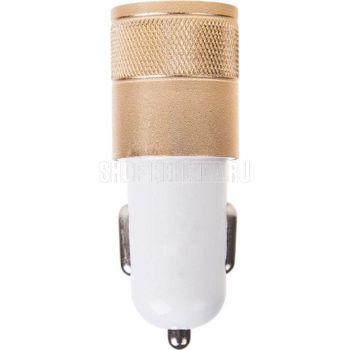 Автомобильное зарядное устройство с 2 USB портами. Технические характеристики: Входное напряжение DC: 12 V-24 V 2хUSB 5.0V±5% Выходной ток: 1000 mA, 2100 mA Цвет: белый-золотой. Подходит для всех типов мобильных устройств.