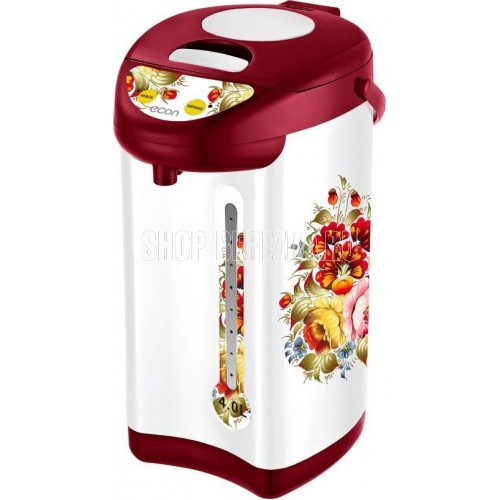 Термопот электрический, Мощность 750Вт, Объем 4 литра, Способ подачи воды - механический, электрический, касанием чашкой, Защита от перегрева, Защита от перепада напряжения, Функция повторного кипячения.