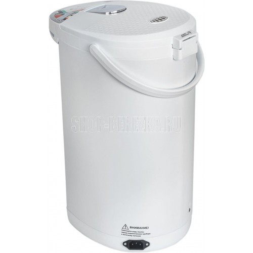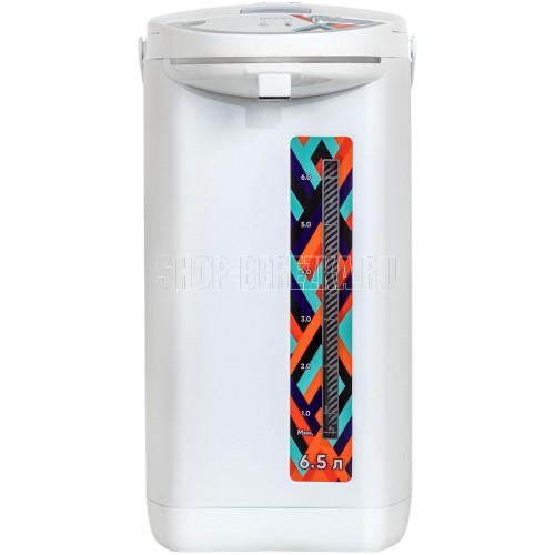 Максимальный объем, л.3 Тип управления:электронное Способы подачи воды: электрический, механический Защита от перегрева: есть Поворотное основание:есть Функция повторного кипячения:есть Индикатор уровня воды: есть Индикатор включения: есть Комплектация: термопот, гарантийный талон, инструкция на русском языке Материал внутренней камеры: нержавеющая сталь Цвет: белый с принтом Потребляемая мощность, Вт.600 Мощность в режиме поддержания температуры, Вт.30 Электропитание, В., Гц.220-240, 50