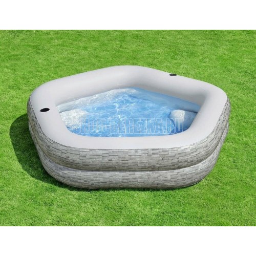 Семейный бассейн, стены из серого камня в деревенском стиле, идеально подходящие для семей с детьми в возрасте от 6 лет и старше. Семейный бассейн с двумя мягкими сиденьями и двумя подстаканниками предлагает все условия для комфорта и идеального отдыха. Два кольца одинакового размера и очень большие боковые панели обеспечивают необходимую устойчивость. Кроме того, его можно легко демонтировать, а затем хранить без особых усилий и экономии места. При сливе воды помогает удобный встроенный сливной клапан. Размер надутый: 213х206х53 см.