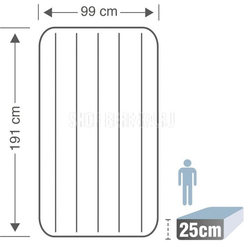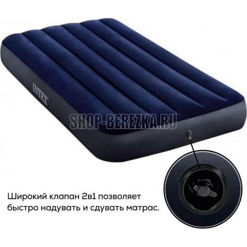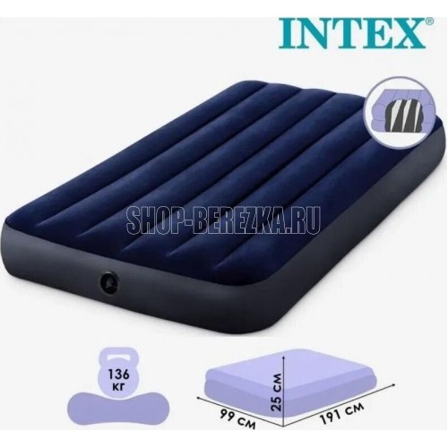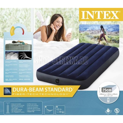 INTEX Матрас надувной CLASSIC DOWNY AIRBED FIBER-TECH 99x191x25 см .(в коробке) Арт. 64757