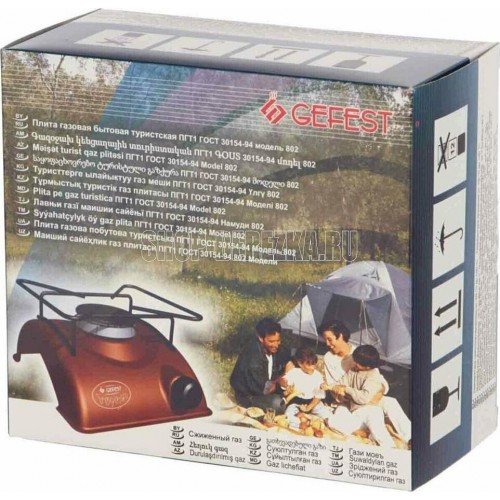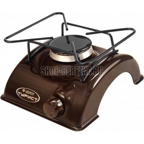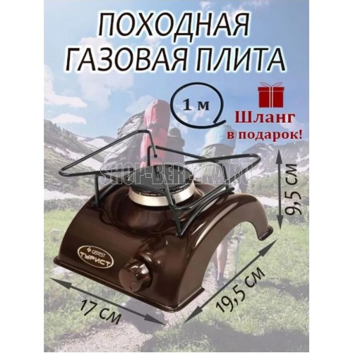Плита газовая туристская * Цвет: коричневый. Фасад эмалированный * Габаритные размеры ШхГхВ: 17х19.5х9.5 см * Термостойкое эмалированное покрытие стола (корпуса) * Фиксированное положение «малое пламя» * Фигурная решетка *