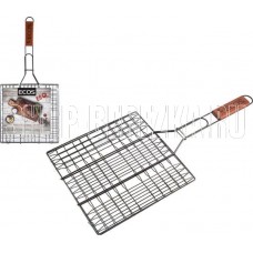 Материал: сталь с антипригарным покрытием, ручка из древесины Размер: 25 x 25 см, Общая длина: 54 см Длина ручки: 10 см Диаметр проволоки: 3мм, 2,5 мм, 1,5 мм. Любите с комфортом готовить на углях птицу, мясо, колбаски, рыбу и овощи? Предпочитаете использовать для этого качественные аксессуары . Надежная и удобная решетка-гриль с антипригарным покрытием для барбекю и мангала обеспечит вам условия для оптимально простого и максимально удобного процесса приготовления!