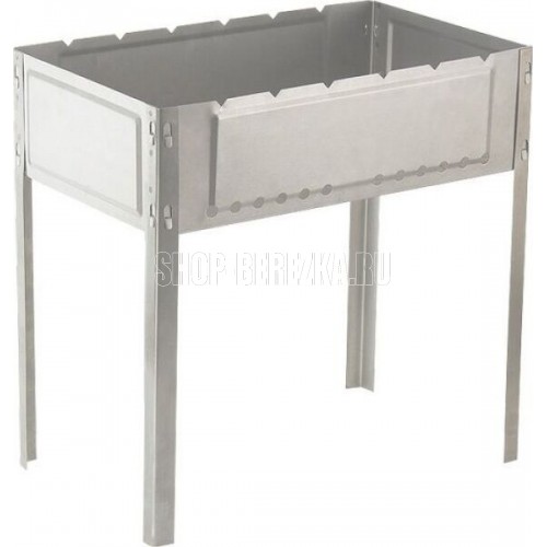 Мангал облегченный с ребрами жесткости 500X300X500 мм, Россия CAMPING Мангал с ребрами жесткости PALISAD Camping 69544 используется во время отдыха на природе. Модель имеет большие размеры корпуса, что позволяет готовить сразу на большую компанию. Складная конструкция облегчает переноску и хранение изделия.Вес, кг 2,5 Габариты, мм 500х300х500 Толщина стенок, мм 0,6 Кованый нет Держатель под казан нет Вертел нет Цвет серебристый Колесики нет Столик нет Материал корпуса сталь Крышка нет Разборный да