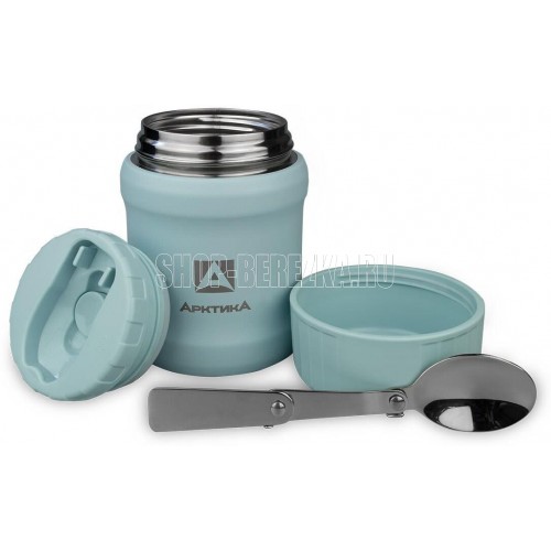 Термос для еды вакуумный, бытовой, тм «Арктика», 0.5 л, В комплект входит вместительная крышка-тарелка и складная ложка. Пробка оснащена кнопкой спуска избыточного давления в термосе. Самая легкая и компактная модель.