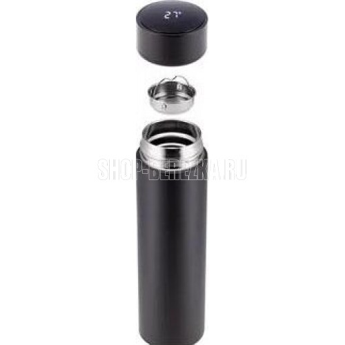 Термокружка автомобильная с датчиком температуры (LED дисплей), 500 мл. Имеет плотно закручивающуюся крышку с сенсорным дисплеем. Металлический корпус изготовлен из нержавеющей пищевой стали, внутренняя колба имеет двойные стенки, что позволяет сохранять температуру содержимого продолжительное время. В комплекте - ситечко для заваривания чая. Цвет: чёрный.