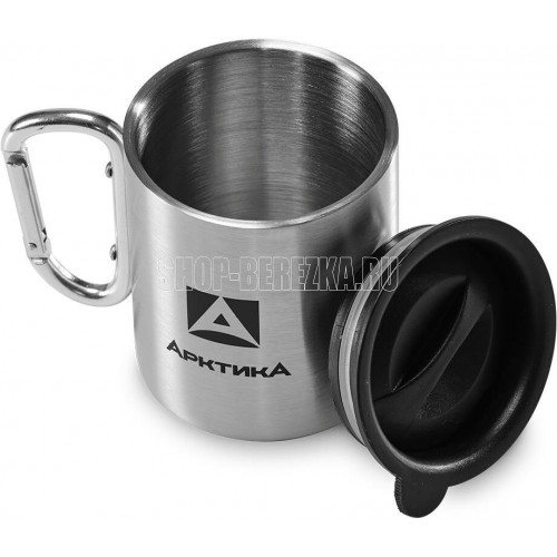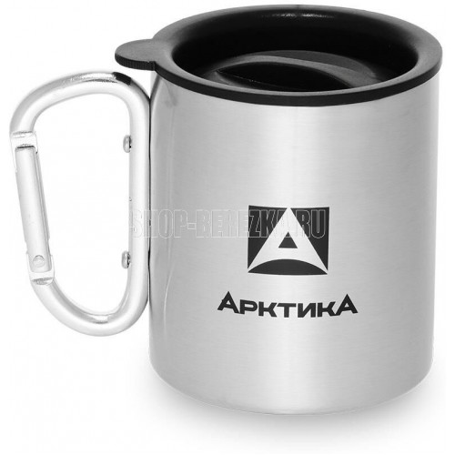 Термокружка невакуумная с двойными стенками, с крышкой для защиты от пыли, объем 300 мл. Ручка-карабин.