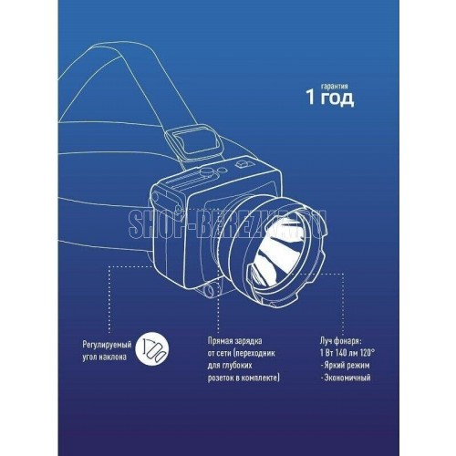 LED ,1W,110лм 2реж., встроенный аккумулятор, прямая зарядка от сети