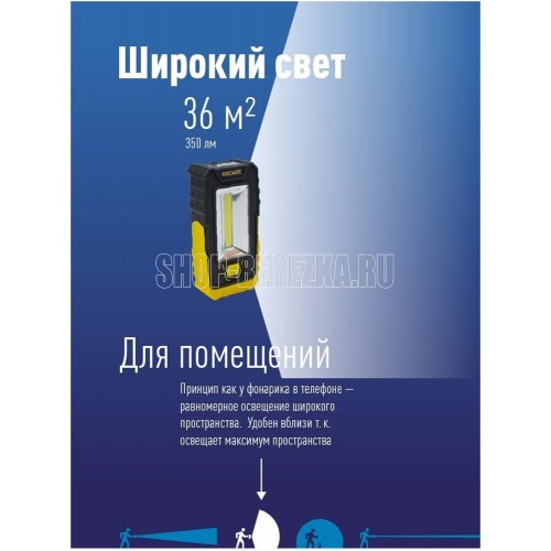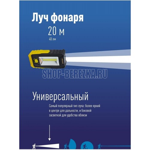 Фонарь светильник КОСМОС *5W COB + 4 White LED *Магнит для крепления на металлической поверхности *Крючок для подвешивания *Клипса для ношения на ремне *Питание 3*ААА
