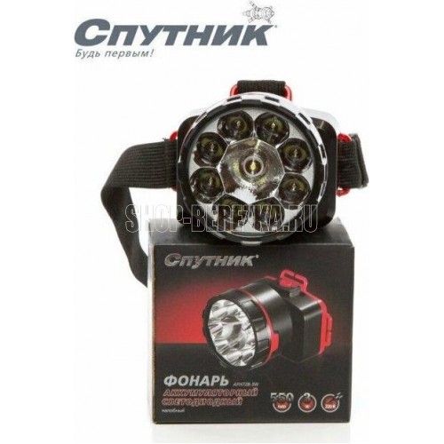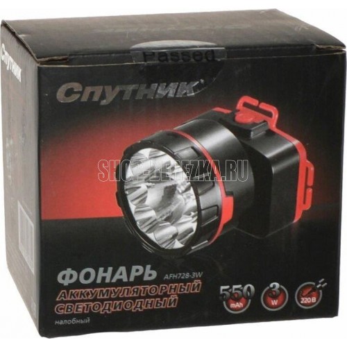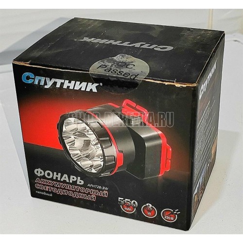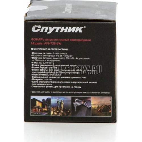 AFH728-3W / 1 светодиод мощностью 3 Вт + 8 светодиодов мощностью 1,6 Вт / аккумулятор 550 mAh / время заряда: 12 ч / время непрерывной работы: 3-7 ч / материал корпуса: пластик / цвет корпуса: чёрный/красный / эластичный ремень для крепления на голову / индивидуальная цветная коробка