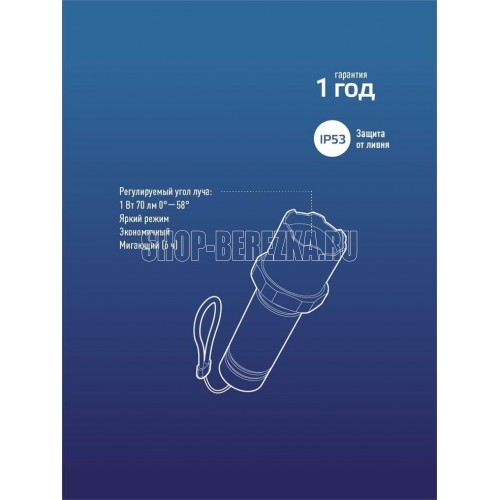 Карманный аккумуляторный ручной фонарь КОСМОС (KOS117Lit), очень легкий и приятный в руках. Дальний узконаправленный луч – самый «дальнобойный», оптика позволяет настроить ширину луча. Три режима работы – яркий, средний и мигающий. Универсальный, востребованный дизайн. Источник света: 1Вт LED (с линзой — при сохранении мощности светового потока, линза увеличивает дальность луча света и интенсивность светового излучения; зум — регулировка дальности и ширины луча); Источник питания: Li-ion аккумулятор 14500 3,7В 450 мА/ч (встроенный), зарядный USB-шнур в комплекте; Количество режимов: 3 (яркий-экономичный-мигающий); Световой поток: 70 лм.; Дистанция освещения: 100 м.; Корпус: ABS-пластик (стилизация под металл), IP53; Компактный карманный размер: 10.3x2.9x2.9 см.; Ремешок ручной