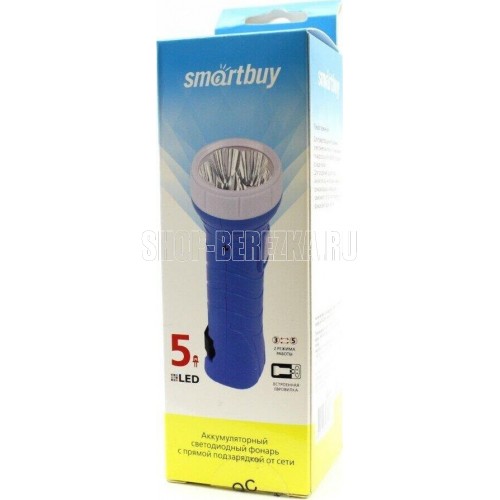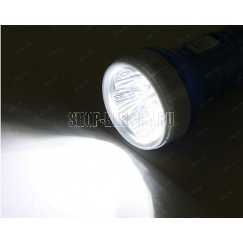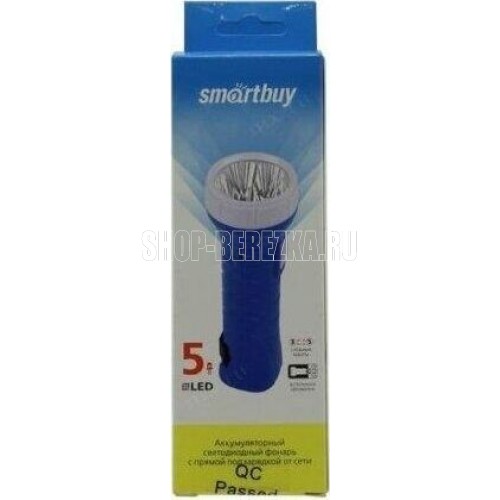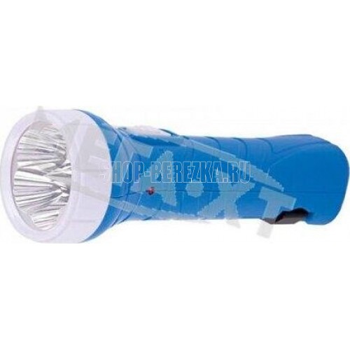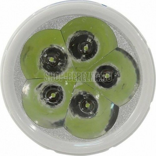 Аккумуляторный светодиодный фонарь с прямой зарядкой, источник света: 5 LED, отражатель: зеркальный, материал корпуса: пластик/металл.