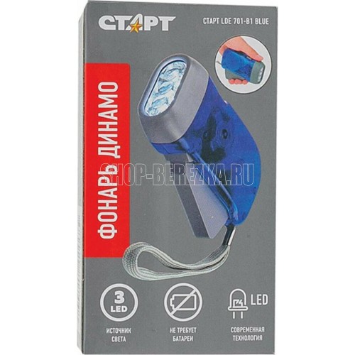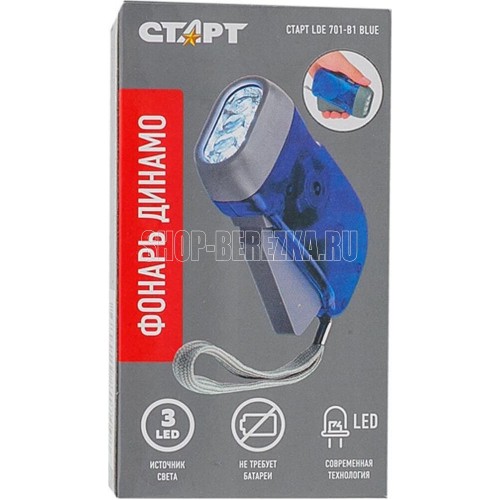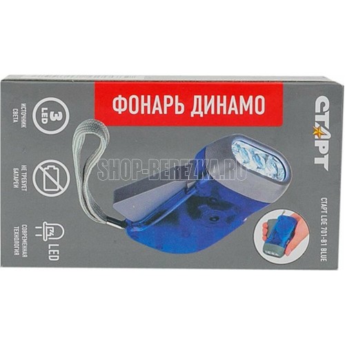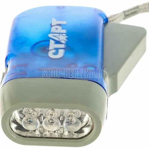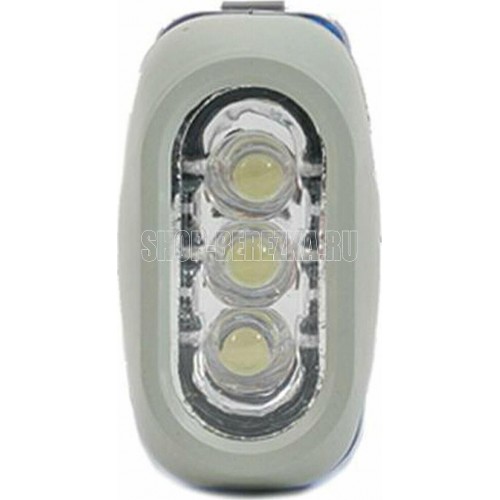 Динамо-фонарь. Источник света - 3хLED. Световой поток - 20Лм. Дистанция освещения - 10м. Материал корпуса - пластик.