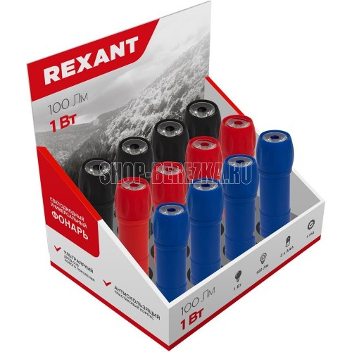 REXANT (75-717) Фонарь универсальный, однорежимный, в корпусе из противоскользящего пластика,синий