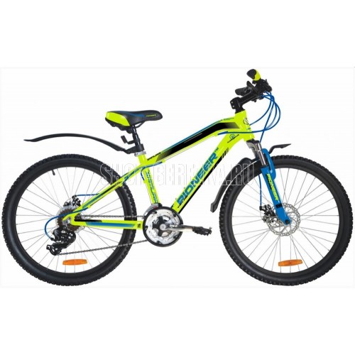 Размер колеса: 24"Тип: ГОРНЫЙРазмер рамы: 13"Материал рамы: алюминийКоличество скоростей: 21Серия переключателей скоростей: PioneerВилка: амортизирующая, GOOD, ход 100ммТормоза передние/задние: диск/диск, механикаПокрышки: WANDA