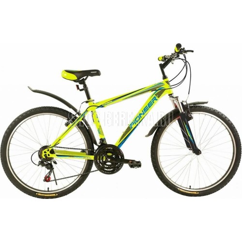 Размер колеса: 26".Назначение: ДЛЯ ВЗРОСЛЫХ.Тип: ГОРНЫЙ.Размер рамы: 16".Материал рамы: сталь.Количество скоростей: 21.Серия переключателей скоростей: PIONEER.Вилка: Амортизирующая, GOODТормоза передние/задние: V-brake/V-brakeПокрышки: PIONEER