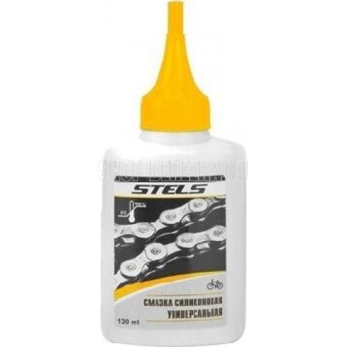 Смазка STELS силиконовая для велосипедных цепей для влажной погоды (влажность более 70%), с высокими проникающими способностями, дополнительно защищает от коррозии и ржавчины, рекомендуемый интервал обработки цепи - 150-200 км. Маслёнка 100 мл.