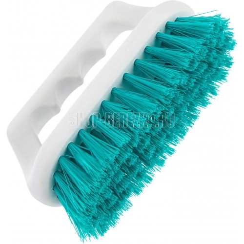 Универсальная щетка Palisad Home 935655 размером 140 х 60 мм, с бирюзовой щетиной, используется для чистки как текстильных материалов (сукна и других тканей), так и твердых поверхностей. Будет полезна в быту.ПреимуществаВысокий ресурс — щетина из качественного полимерного сырья устойчива к истиранию.Эффективное очищение — за счет густой щетины щетка полностью удаляет пыль и загрязнения.Эргономичность — рукоятка с подпальцевыми выемками удобно ложится в руку.